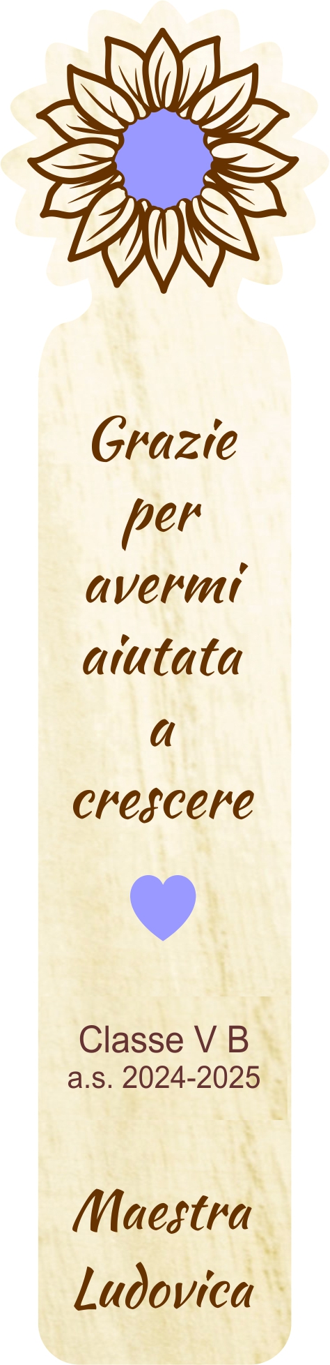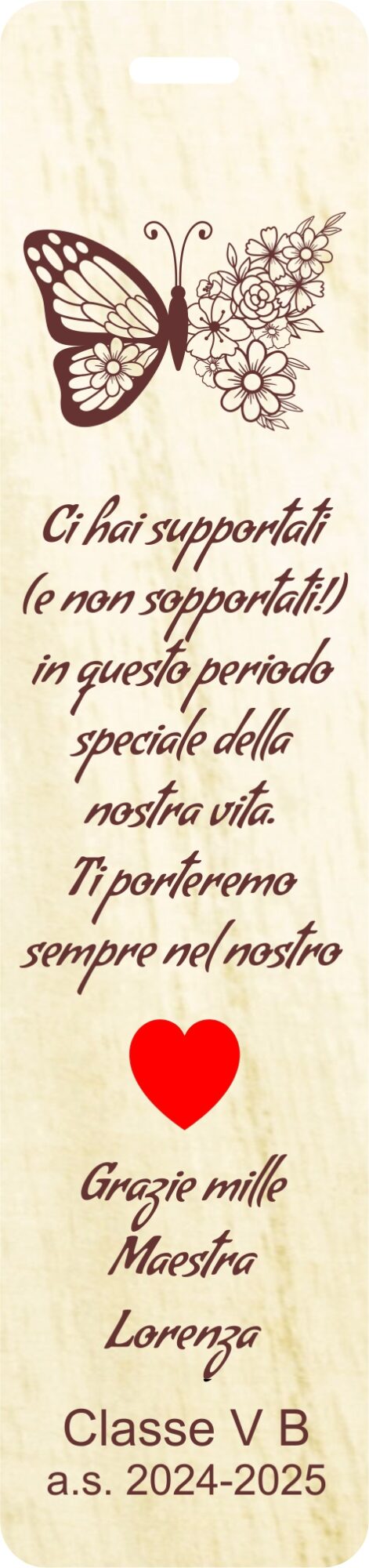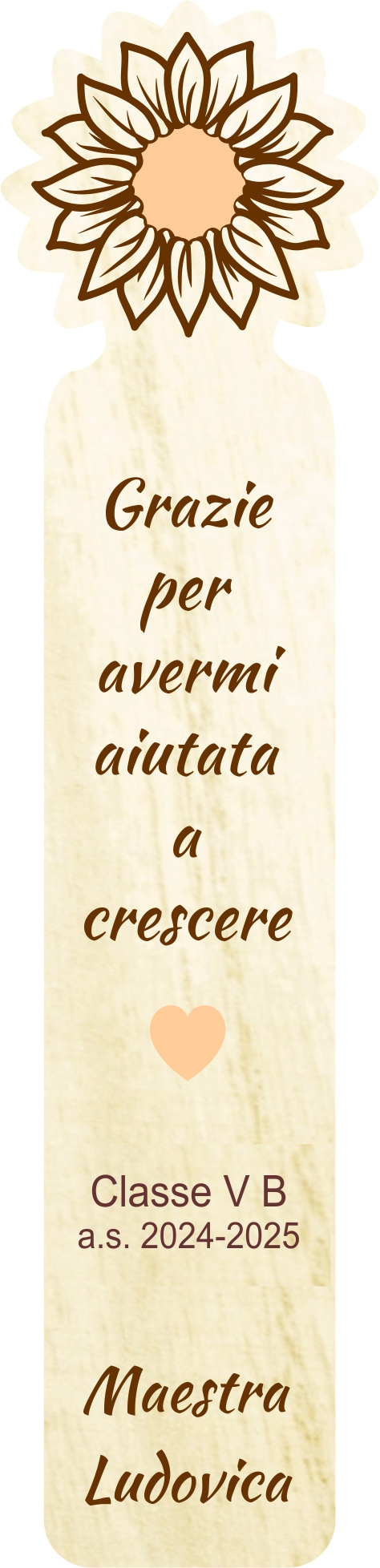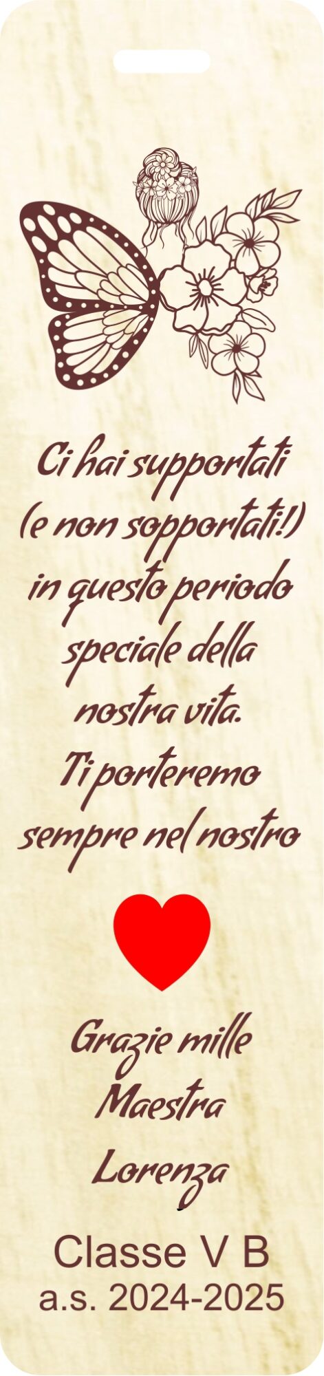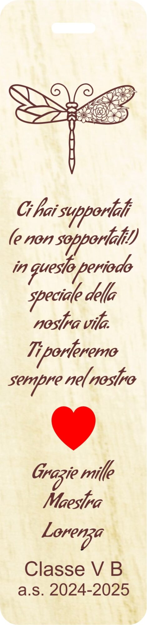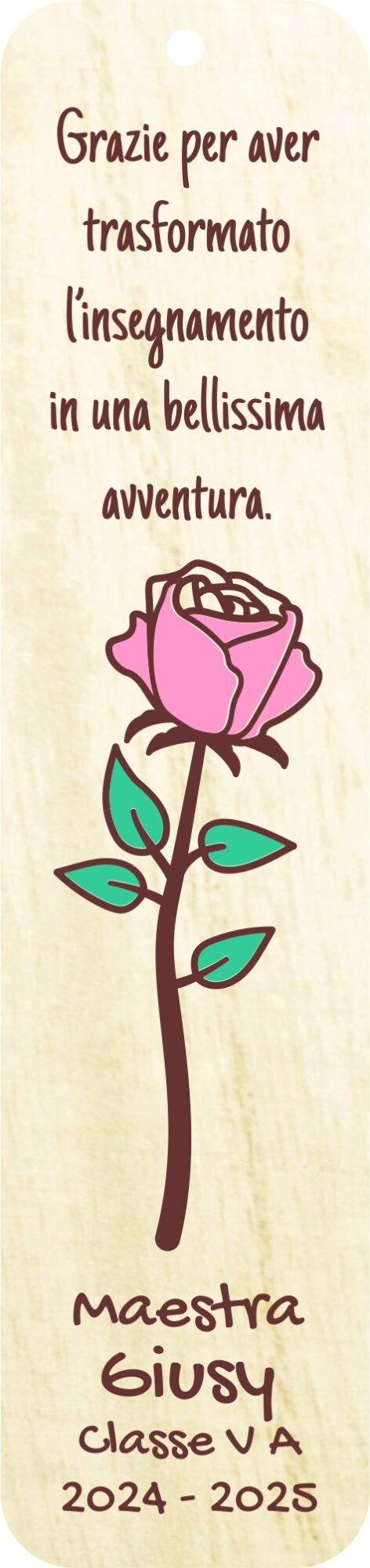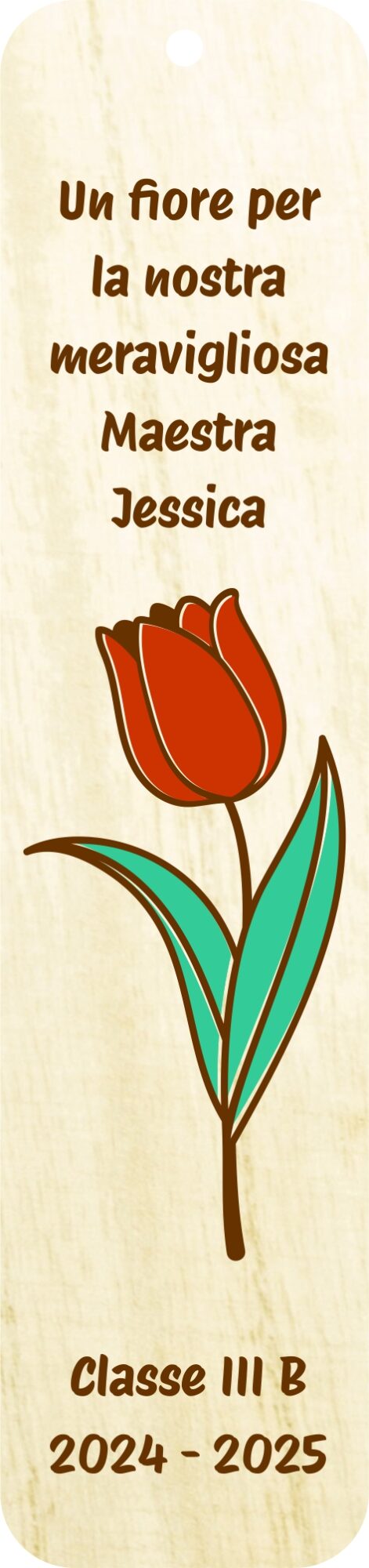 Ho ordinato dei segnalibri in legno da personalizzare per i miei alunni, mi hanno seguito e fatto il progetto sin da subito: velocissimi e gentili. I segnalibri sono meravigliosi!!! Grazie ancora!