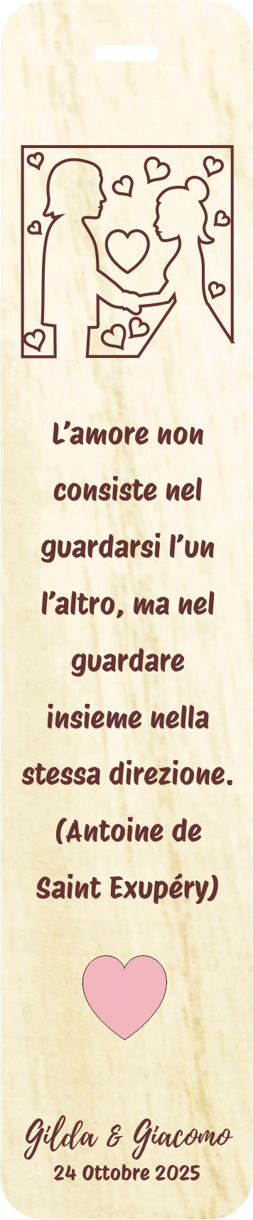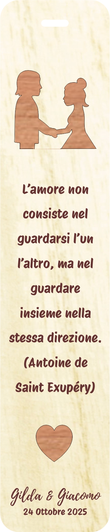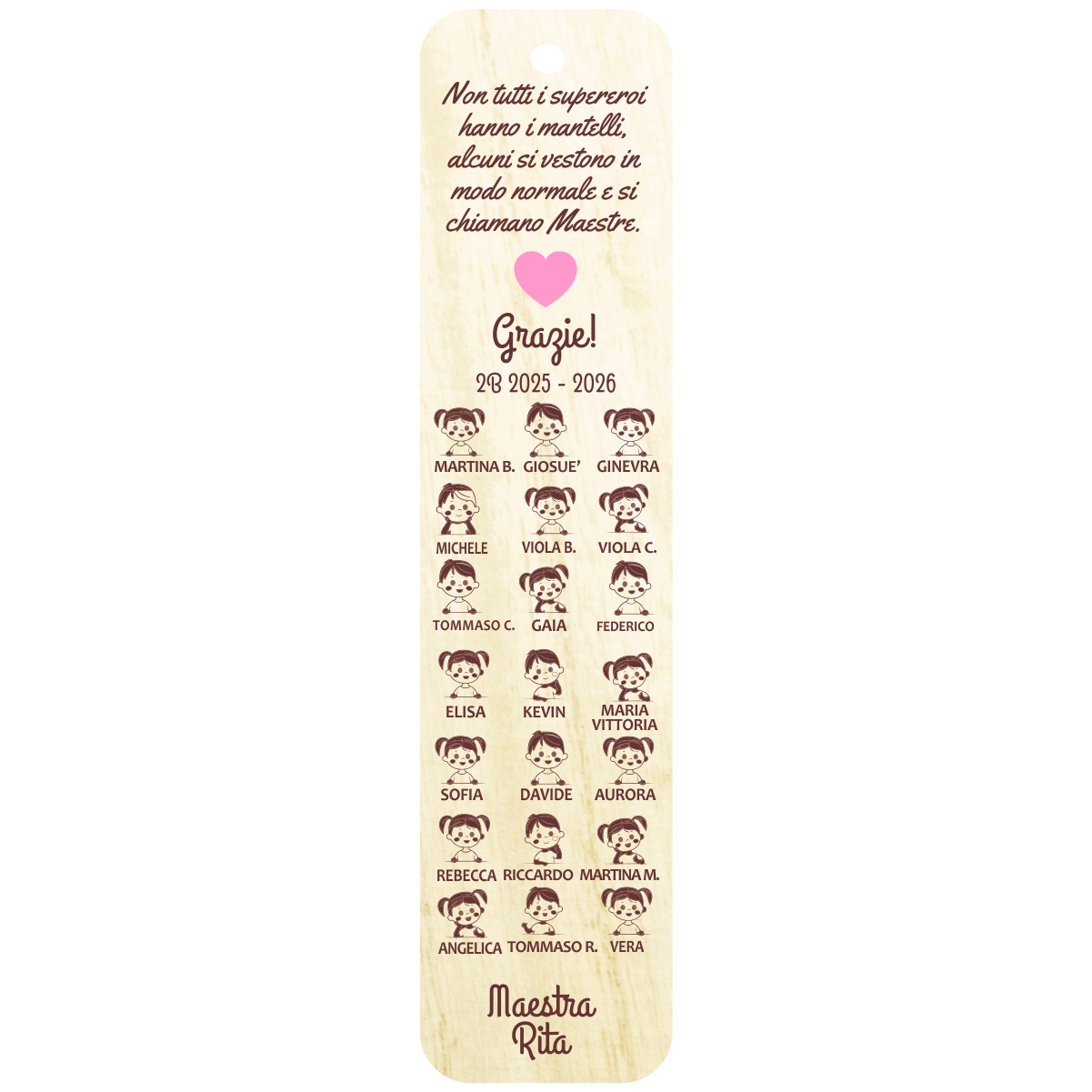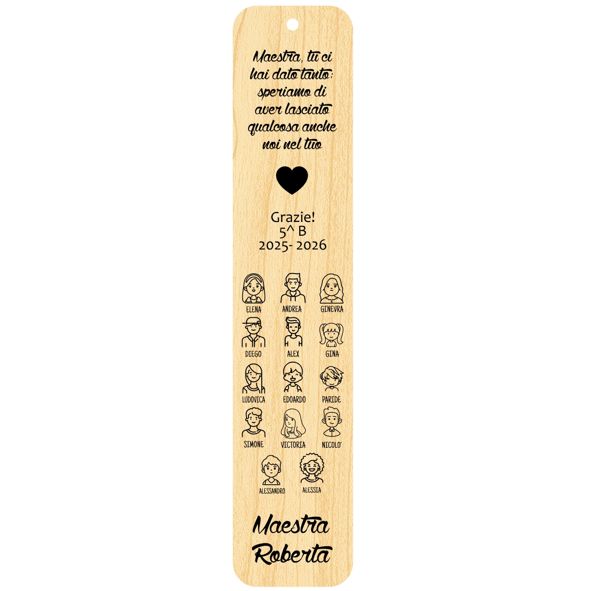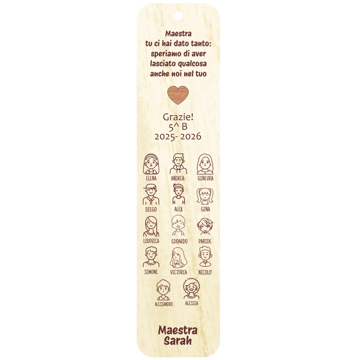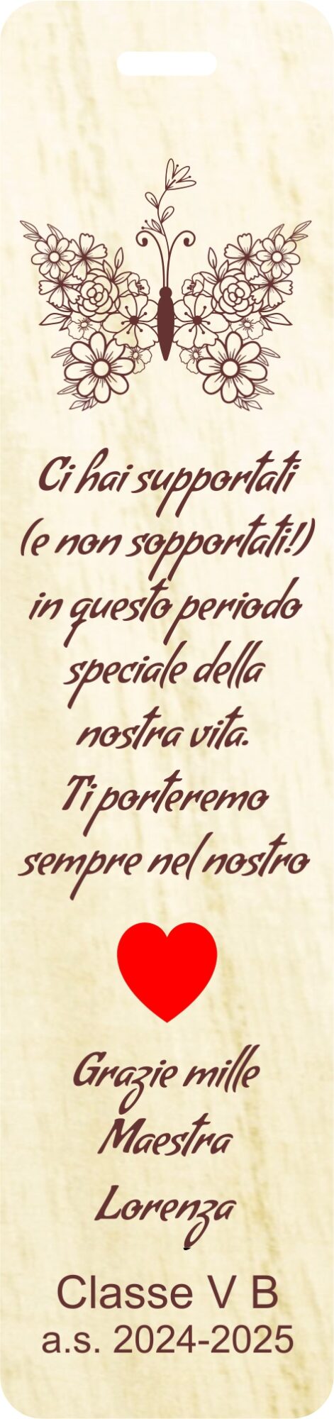 Ho ordinato dei segnalibri in legno da personalizzare per i miei alunni, mi hanno seguito e fatto il progetto sin da subito: velocissimi e gentili. I segnalibri sono meravigliosi!!! Grazie ancora!